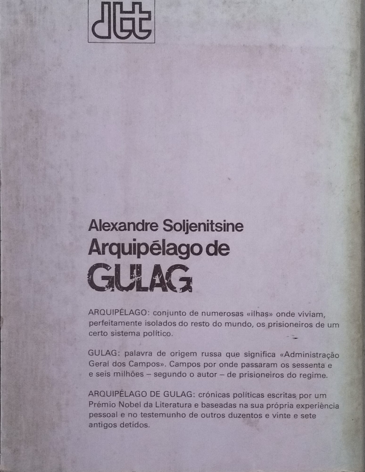Relato monumental sobre o sistema de campos de trabalhos forçados soviéticos, construído a partir da experiência directa do autor e de centenas de testemunhos recolhidos ao longo de anos. Neste primeiro volume, Soljenítsine revela o mecanismo invisível da repressão: as detenções arbitrárias, os interrogatórios, os julgamentos sem justiça e o início do percurso pelo arquipélago de prisões e campos.