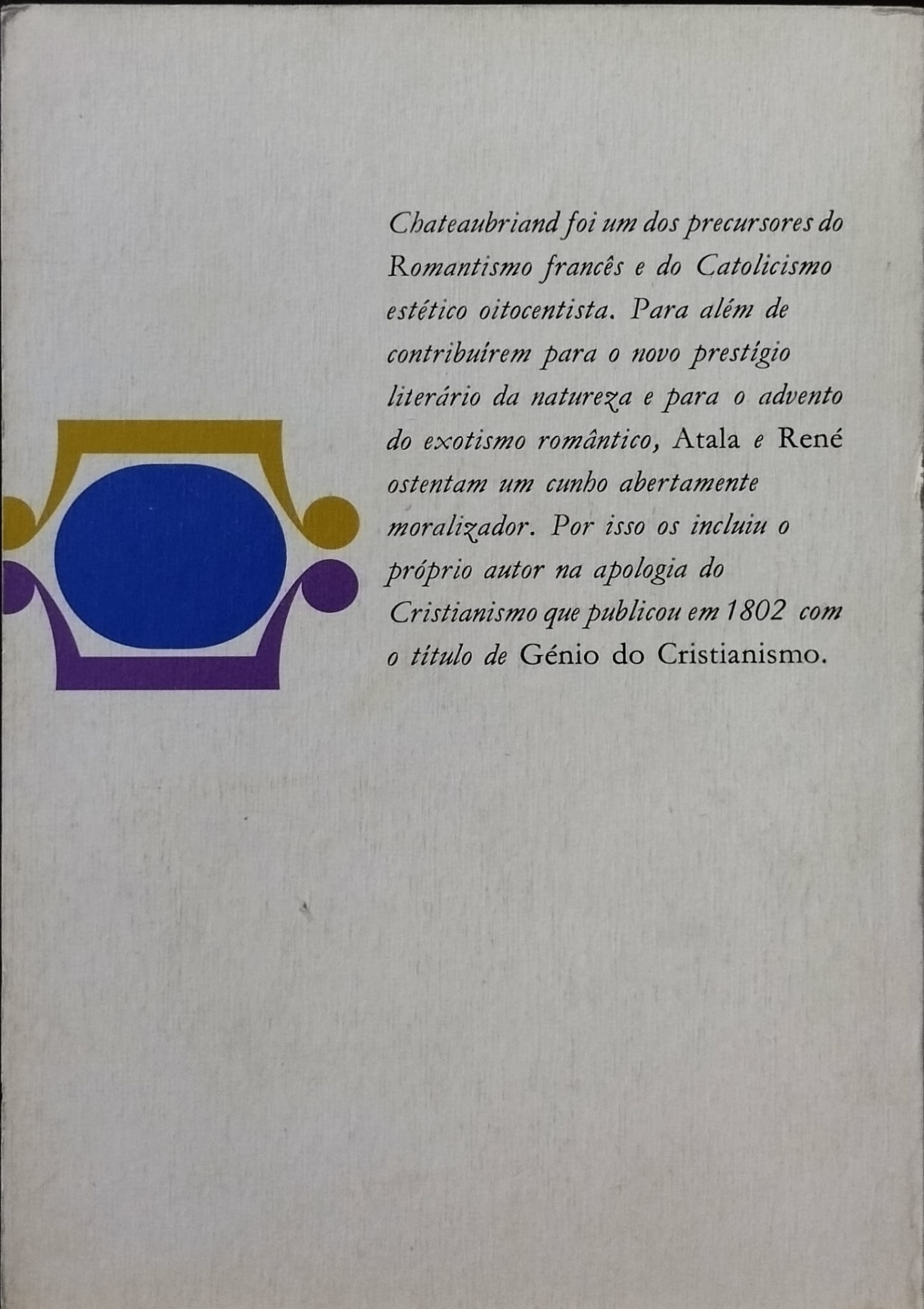 René é um homem sem tempo nem morada, errante entre ruínas e esperanças. Sente o peso da vida sem compreender o seu sentido, e a sua alma — vasta, mas cansada — reflete o desassossego de uma geração inteira. Entre viagens e memórias, descobre que a própria sensibilidade pode ser uma ferida. René é o retrato do homem moderno no início do século XIX: solitário, lúcido e condenado a sentir demais. Mais do que uma narrativa, é um espelho da melancolia romântica e do eterno mal-de-viver.