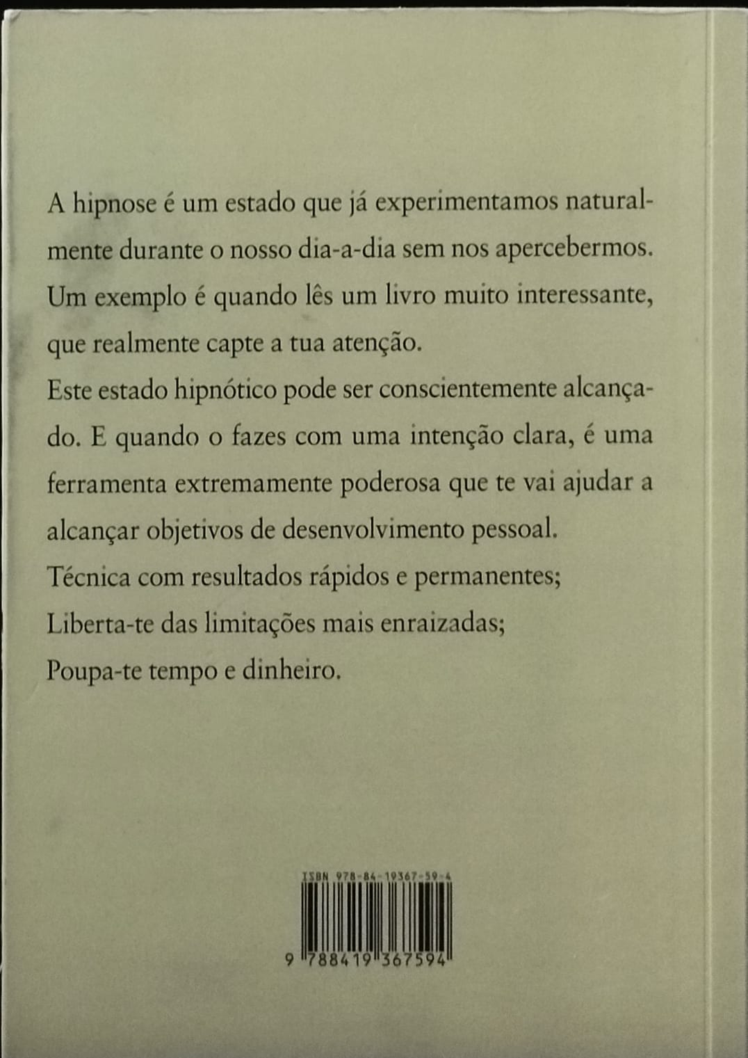 Serena e prática, esta obra convida o leitor a mergulhar no fascinante estado de consciência que é a hipnose — não como espectáculo, mas como ferramenta de autoconhecimento e transformação. Cláudia Roque ensina, passo a passo, a usar a autohipnose para libertar bloqueios, cultivar foco e reencontrar o equilíbrio interior. Com linguagem simples e exercícios acessíveis, este guia mostra que o poder de mudar está, afinal, nas nossas próprias mãos e na calma que sabemos criar.
