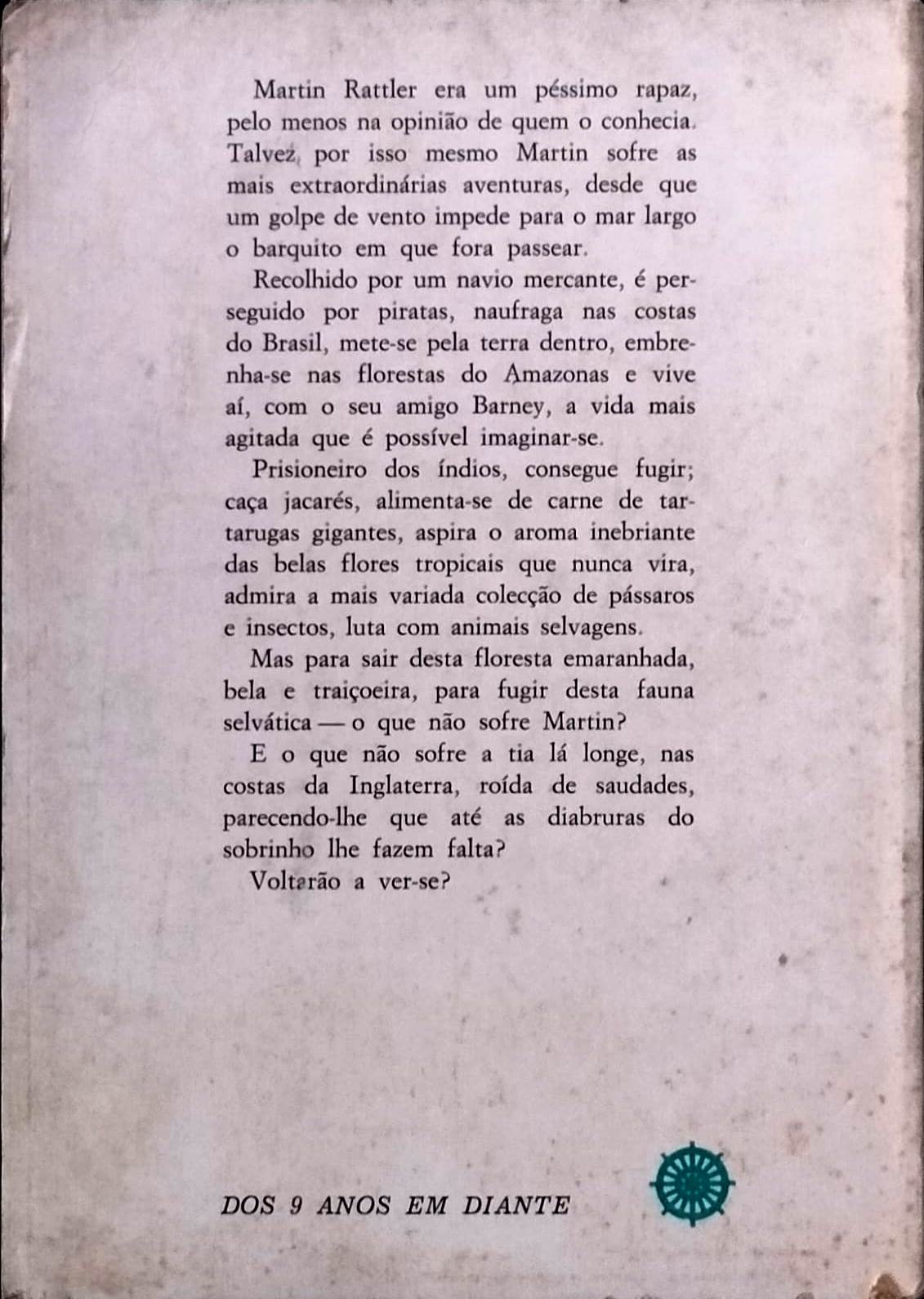 Martin Rattler não é exactamente o rapaz exemplar que os adultos admiram — e talvez por isso o destino o empurre para uma das mais vertiginosas aventuras que se pode imaginar. Um passeio inocente acaba em mar aberto, segue-se um navio mercante, piratas, um naufrágio e, de repente, a vastidão inquietante das florestas do Amazonas.