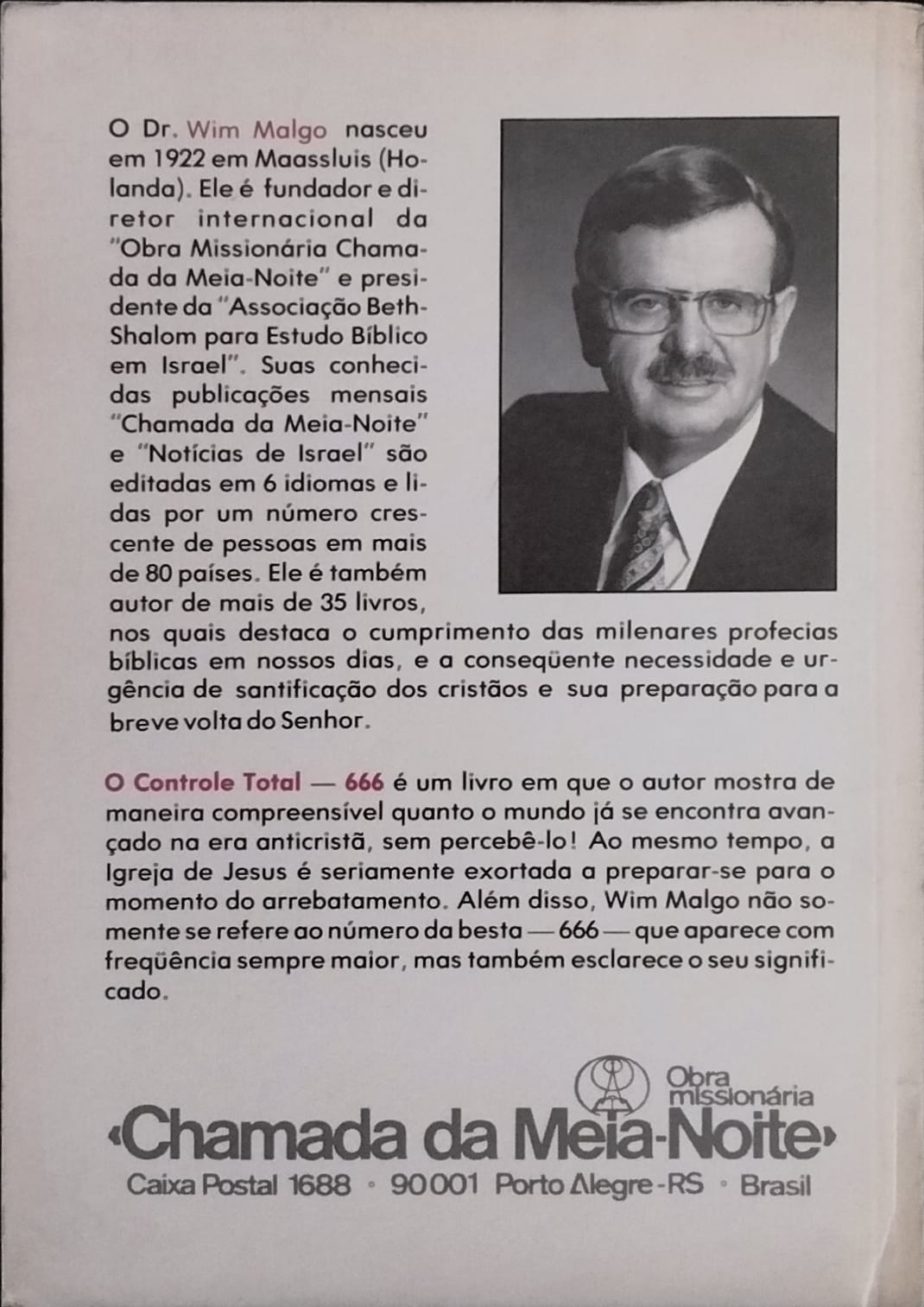 Há livros que nascem do espanto — e outros que nascem do medo crescente de um mundo que acelera sem olhar para trás. *O Controle Total – 666*, de Wim Malgo, pertence a essa segunda corrente: uma tentativa fervorosa de interpretar sinais, tecnologias, avanços científicos e inquietações políticas à luz da escatologia cristã.
