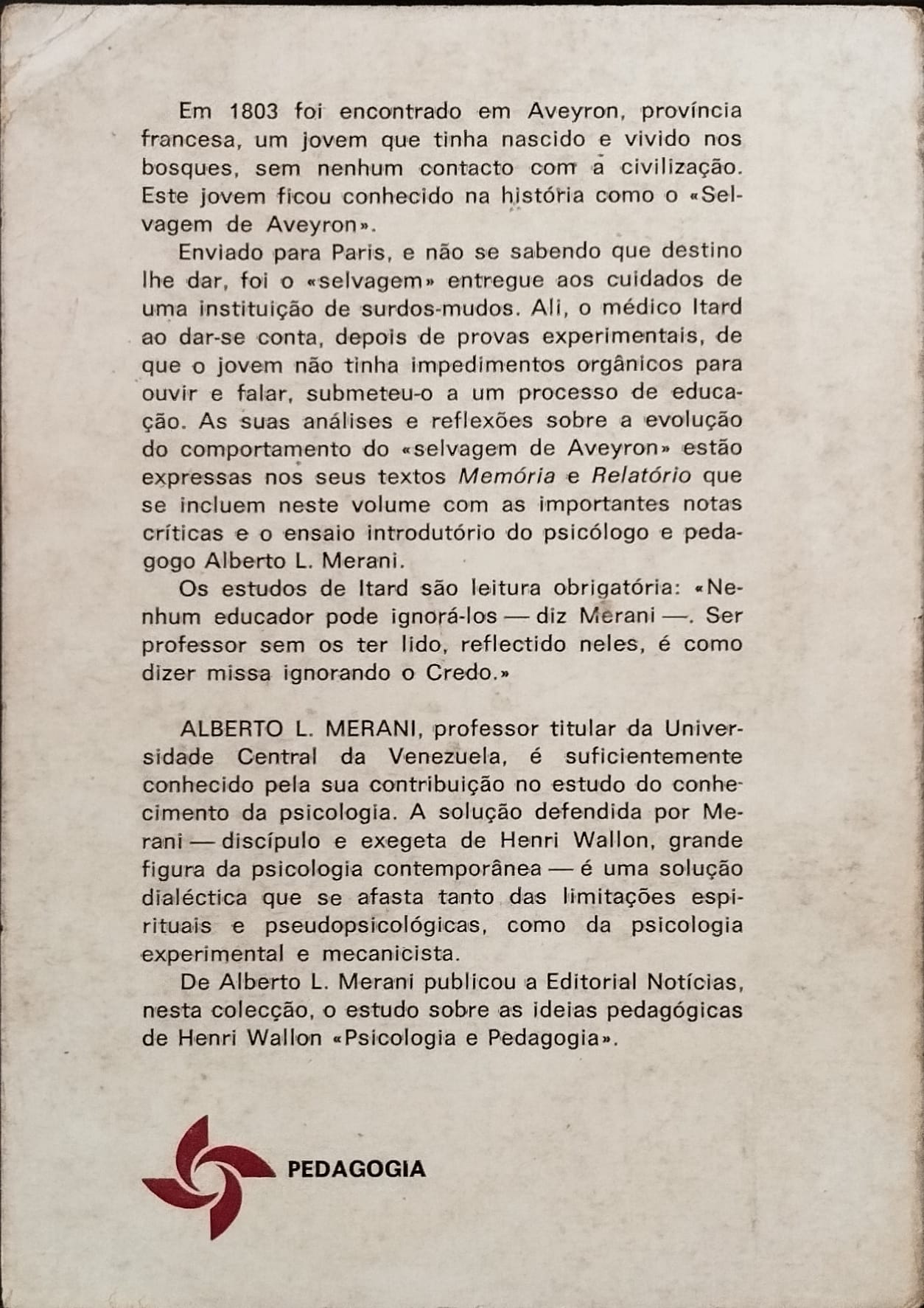Este livro cruza duas perguntas que nunca deixaram de arder: o que é a natureza humana e até onde pode ir a educação. Na primeira parte, Alberto L. Merani percorre o debate filosófico, histórico e científico sobre o homem, dialogando com Darwin, Marx e a noção de historicidade do humano. Na segunda parte, entra em cena o célebre caso do “selvagem de Aveyron”, acompanhado pelos textos e relatórios de Jean-Marc Gaspard Itard, analisando os limites e as possibilidades da educação na construção do sujeito. Uma obra fundamental para compreender o encontro — nem sempre pacífico — entre biologia, cultura e pedagogia.