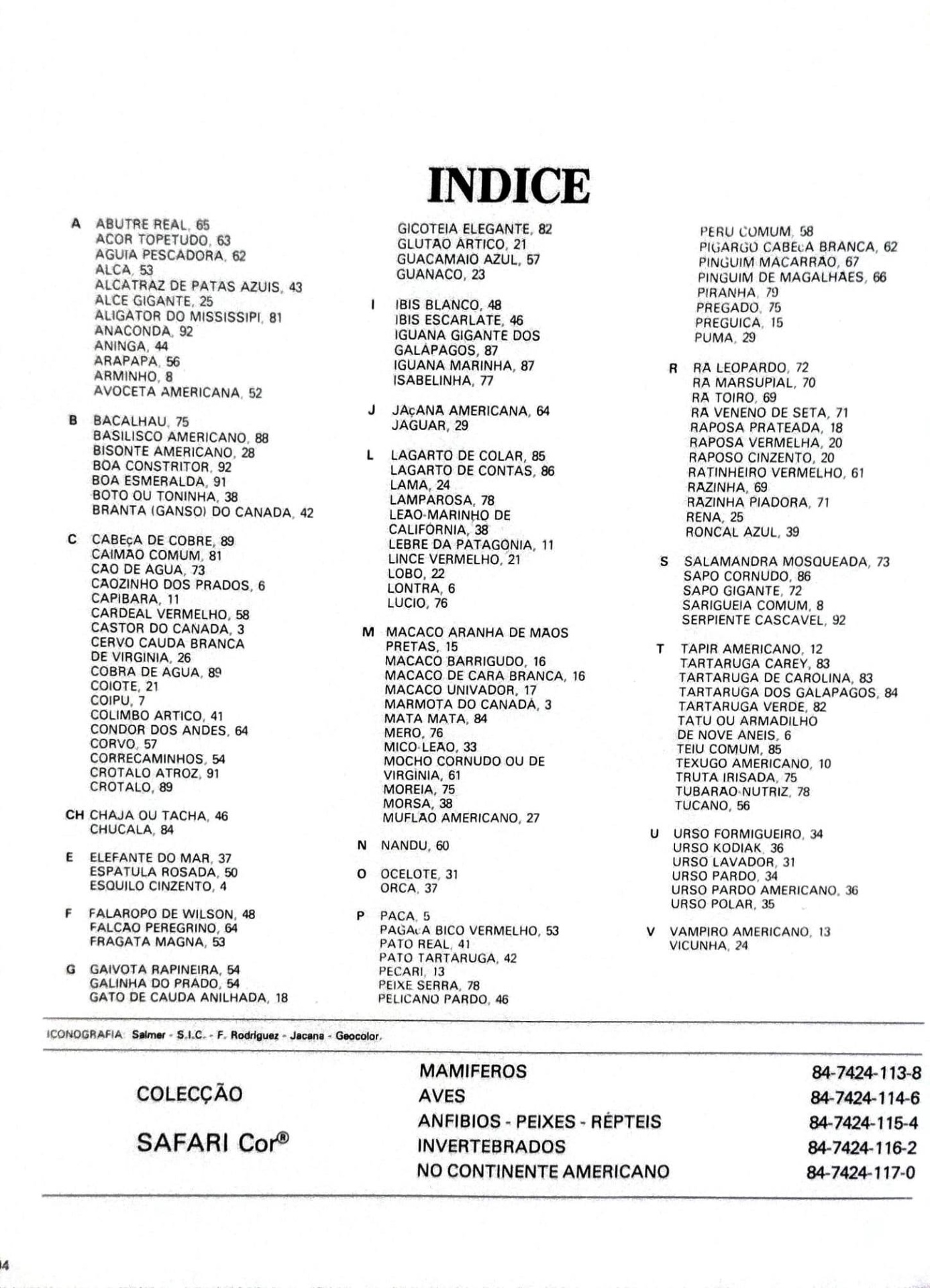 Este volume da colecção Safari Cor apresenta um retrato abrangente e acessível da fauna do continente americano, reunindo mamíferos, aves, anfíbios, peixes, répteis e invertebrados. Cada espécie é apresentada com texto informativo claro, acompanhado por fotografia a cores, descrevendo características físicas, habitat, alimentação e comportamentos essenciais. Trata-se de uma obra de divulgação científica pensada para leitores curiosos de todas as idades, com especial vocação pedagógica, onde o rigor convive com o fascínio natural que os animais despertam. Livro que convida à descoberta, página a página, como quem atravessa um continente inteiro sem sair do lugar.