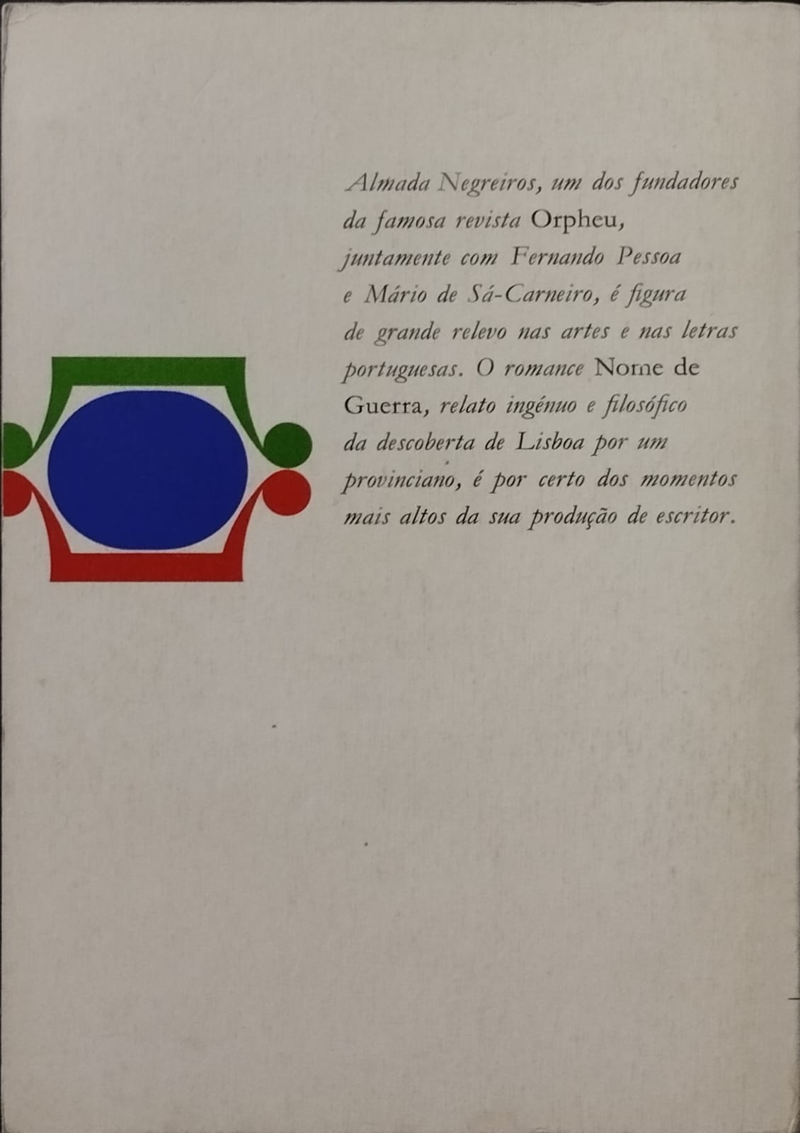 Nome de Guerra é a história de um homem em formação, narrada como quem aprende a olhar o mundo pela primeira vez. Um provinciano chega a Lisboa e confronta-se com a cidade, com os outros e consigo próprio, num percurso interior feito de descobertas, hesitações, ideias, quedas e recomeços. Mais do que um romance de acontecimentos, é um romance de consciência: sobre identidade, aprendizagem, desejo, pensamento e solidão. Almada escreve com lucidez, ironia e um olhar profundamente humano, conduzindo o leitor por uma experiência íntima e filosófica, onde cada passo é também uma pergunta.